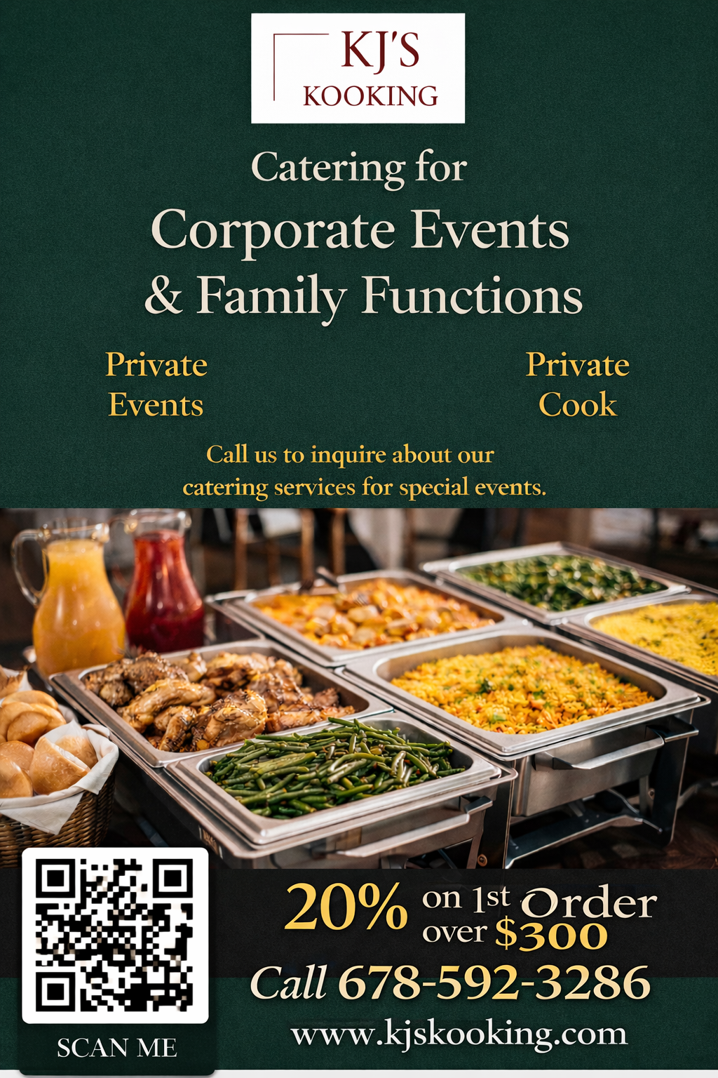 At KJ’S Kooking LLC, we specialize in providing exceptional catering services tailored to your event's unique needs. Whether it's a corporate gathering, wedding, or private party, our team ensures a memorable culinary experience.